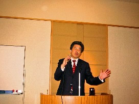 講演の詳しい内容は、別コーナー http://www.greenfriend.jp/oldpage/2005/10/in.htmlで詳しく紹介させていただいておりますが、タイガース星野SD去就の話題から、サッカーJリーグ誕生の秘話、ゴン中山、野茂英雄、イチローそして松井秀喜まで、スポーツ界をにぎわせたとっておきの話が次々にでてきます。そして、リーダーの条件は、passion(情熱)・mission(理念)・action(行動)であると。ボトムアップの考え方は理想的だが、最後はトップの人間がリーダーシップをもって挑まないと解決しないということそして、skill < will つまり技能よりも意志の持ち方次第でどうにでもなるんだということを、を熱く語っていただきました。